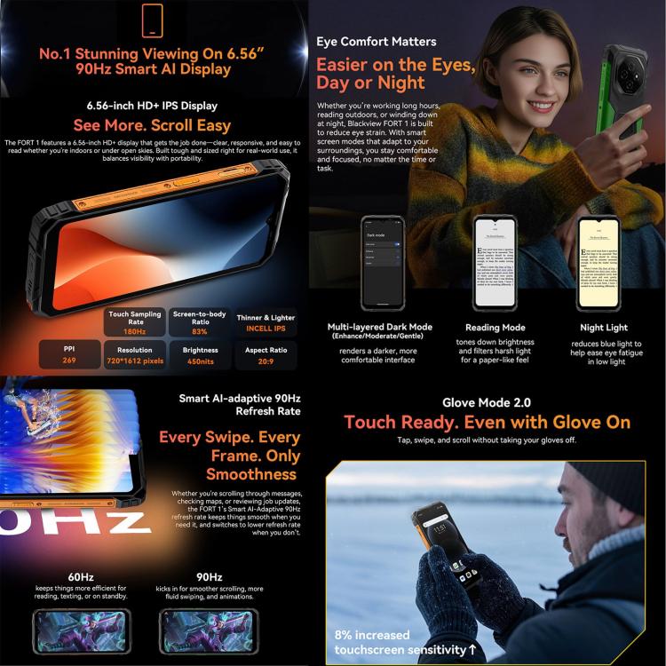 Whether you're scrolling through messages, checking maps, or reviewing job updates, the FORT 1's Smart AI-Adaptive 90Hz refresh rate keeps things smooth when you need it, and switches to lower refresh rate when you don't.
