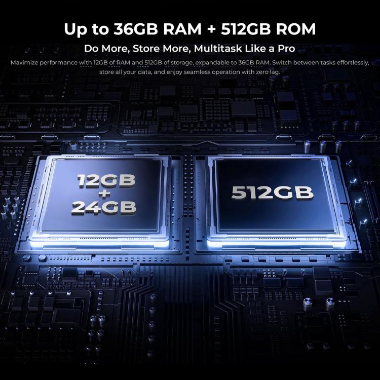 Maximize performance with 12GB of RAM and 512GB of storage, expandable to 36GB RAM. Switch between tasks effortlessly, store all your data, and enjoy seamless operation with zero lag.