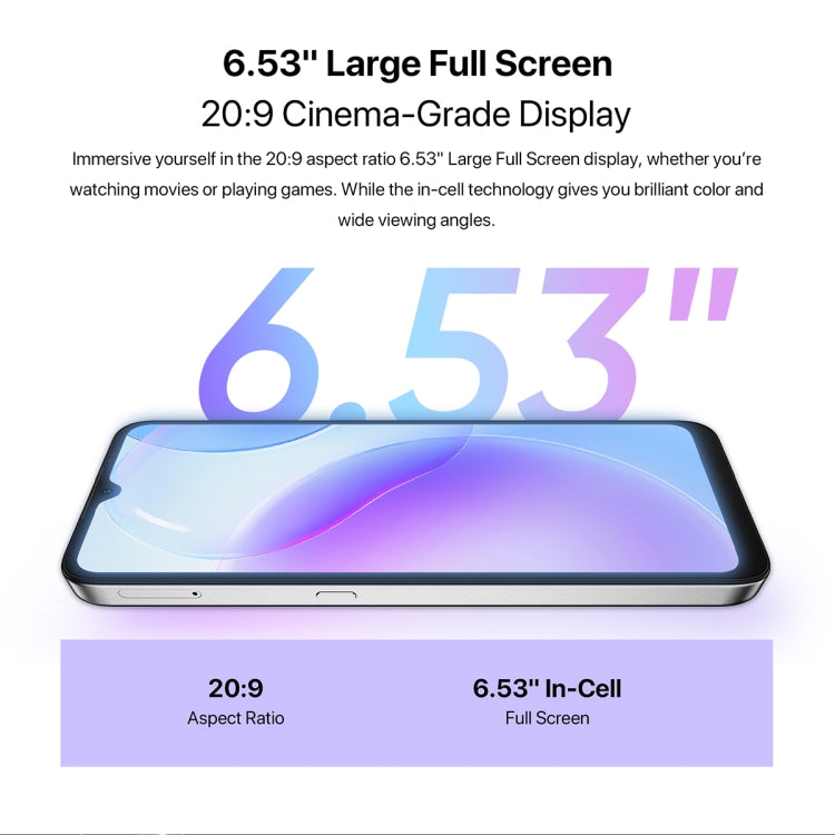 Immersive yourself in the 20:9 aspect ratio 6.53" Large Full Screen display, whether you’re watching movies or playing games. While the in-cell technology gives you brilliant color and wide viewing angles.